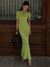 | Features | V-neckline, lace-up decoration, and ankle-length design |