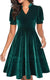 | Fit & Style | Flattering fit-and-flare, empire-waist silhouette with a modest V neckline and short puff sleeves for a feminine, semi-formal look. |