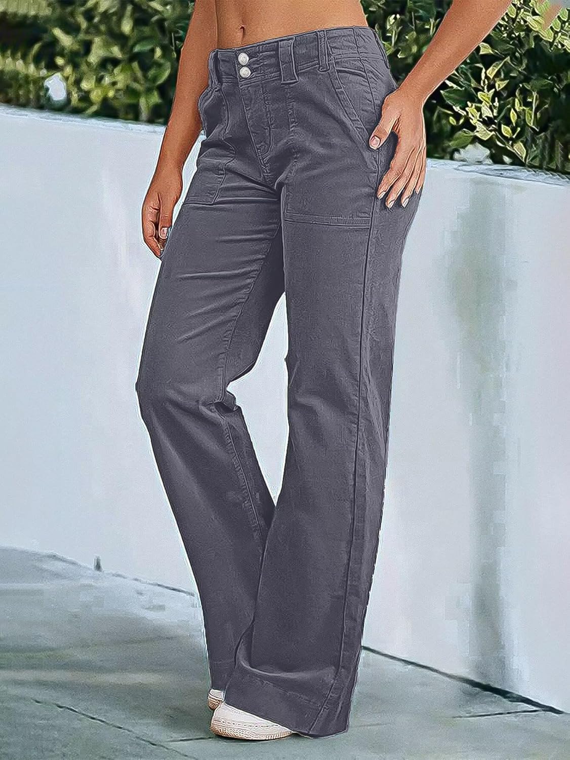 Elevate everyday dressing with softly structured corduroy pants that skim the body, smooth the midsection, and create a long, graceful leg line. The gently stretchy fabric and mid-rise, wide-leg cut deliver all-day comfort and polish, from busy workdays to relaxed evenings out with friends.