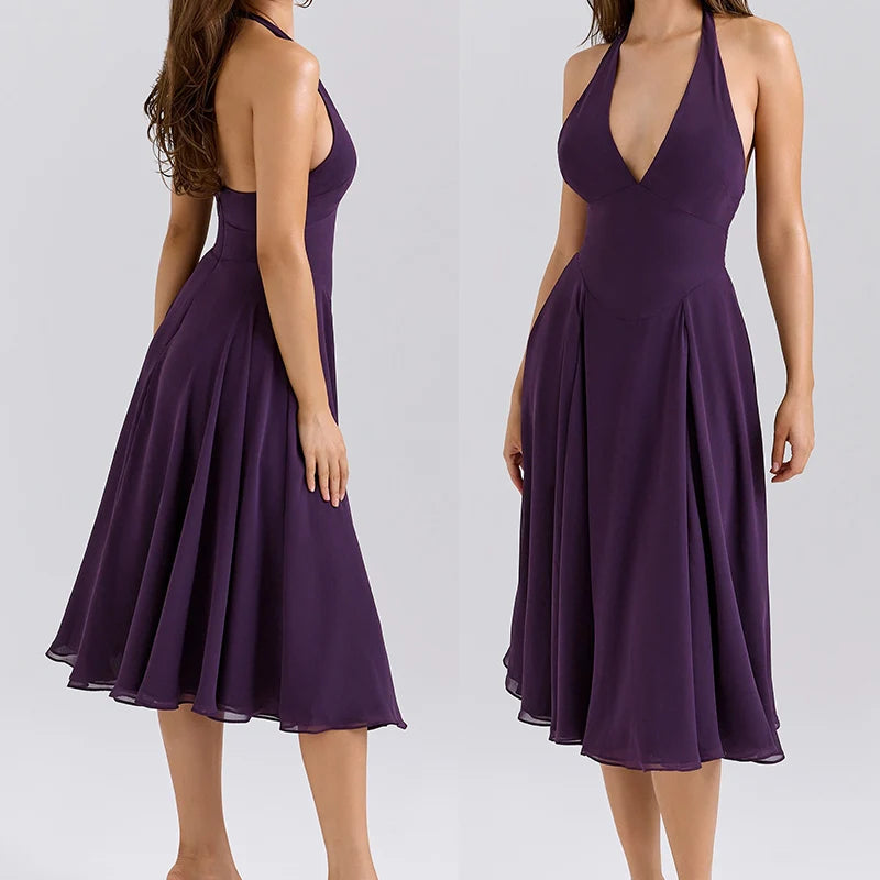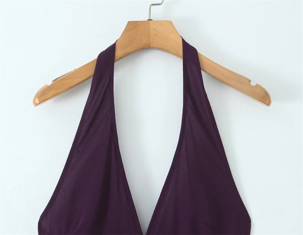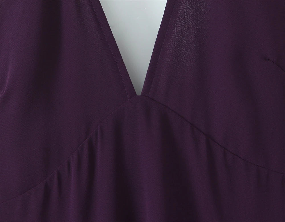 | Features | Sleeveless design with a stylish V-neck and draped decoration |