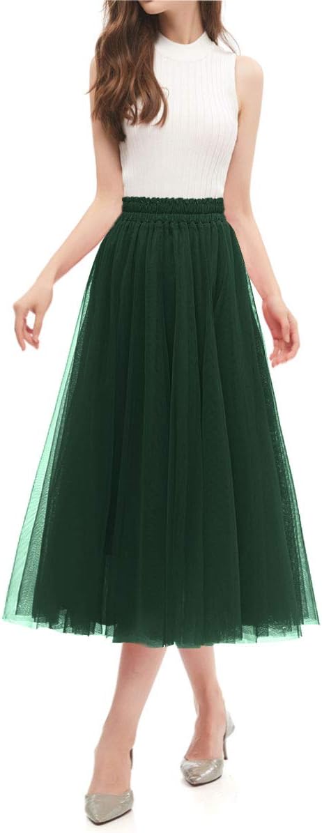 Float through every special moment in this tea-length tulle skirt, designed to skim gracefully over your curves with an elegant A-line silhouette. Soft layers of lined tulle and a comfortable elastic waist create a refined, feminine look that feels effortless from office hours to evening celebrations.