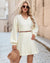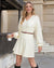 | Fit & Style | Flattering high-waisted babydoll silhouette with deep V-neck, lantern long sleeves, and a swaying A-line mini skirt that skims rather than clings. |