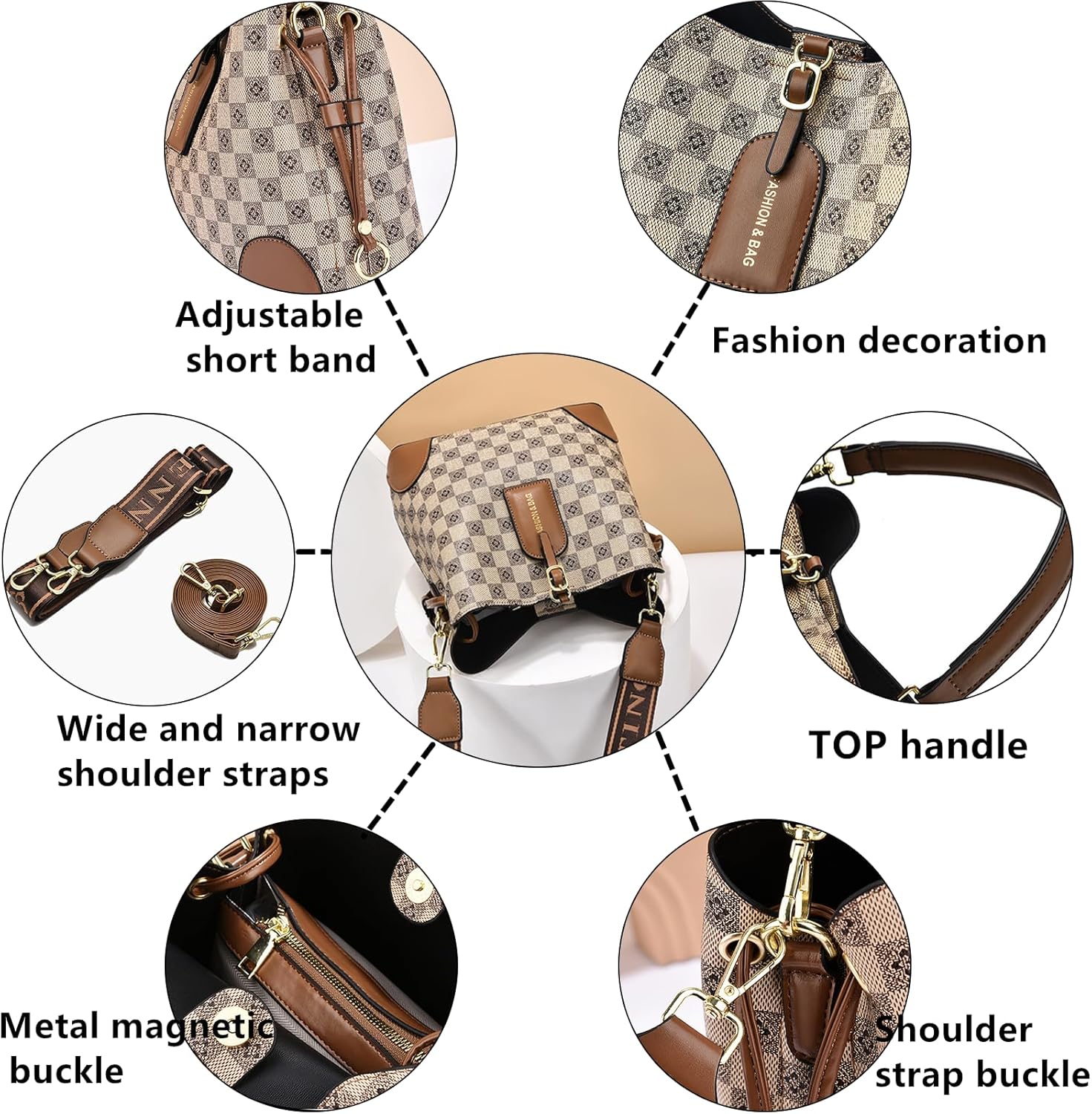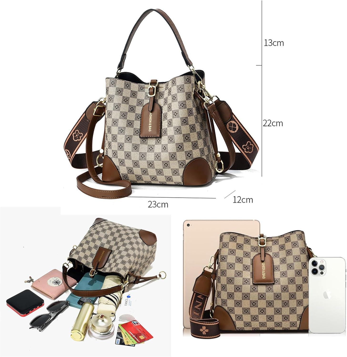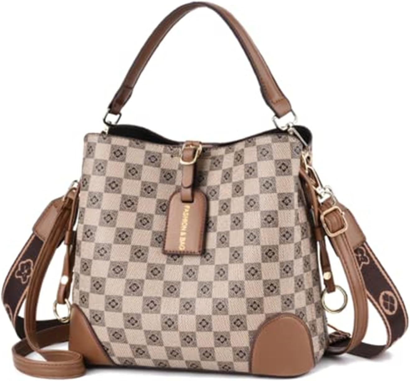 Fit & Style Medium bucket-style hobo satchel with top handle and adjustable straps; retro printed plaid design for a polished, feminine look.