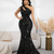 | Features | One-shoulder tassel detail, sheer mesh chest panel, back zipper closure, curve-enhancing stretch fabric, and elegant floor-skimming mermaid design. |