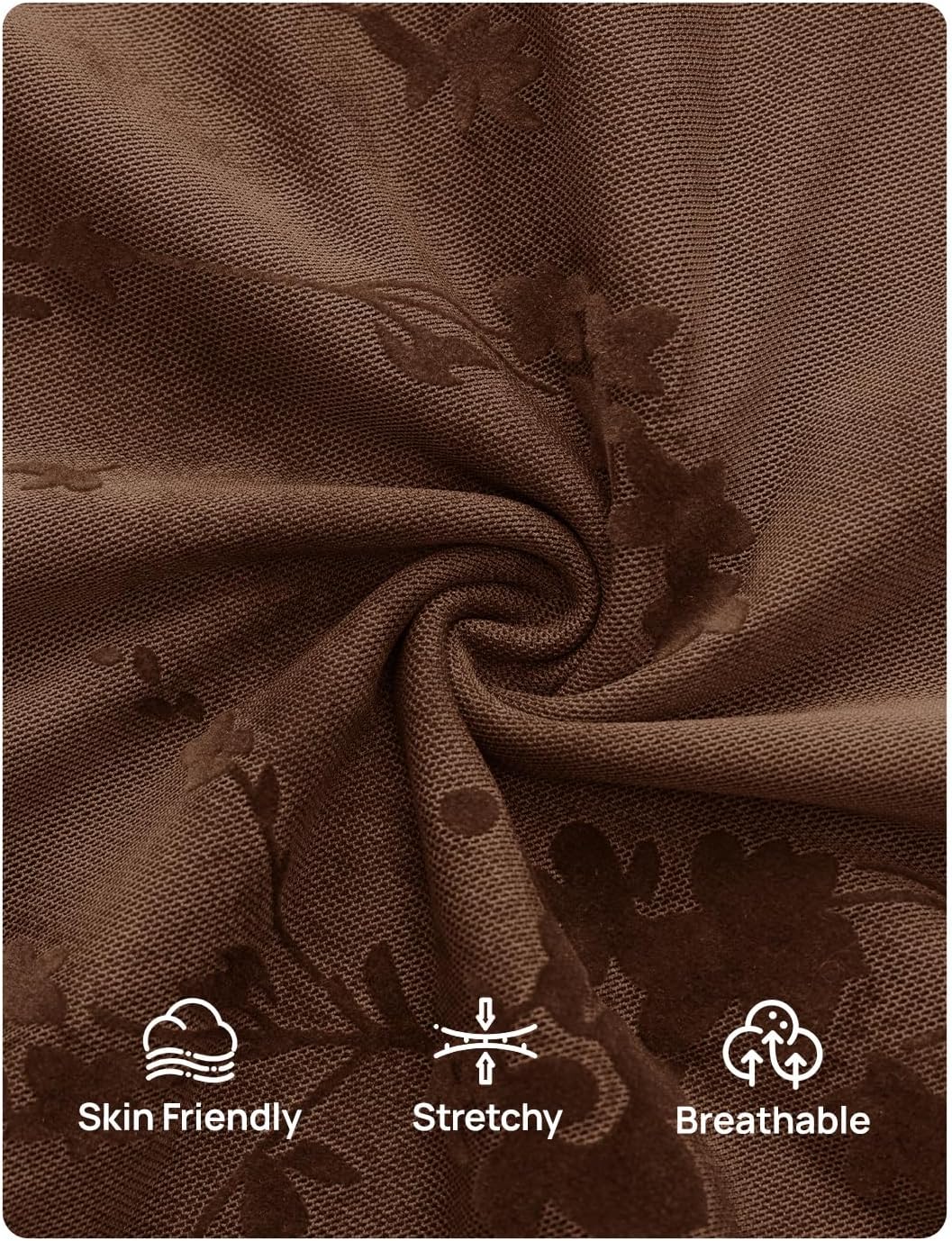 | Material & Fabric | 95% polyester, 5% elastane with jacquard knit floral mesh; soft, stretchy, lightweight, breathable and fully lined for non-see-through coverage. |