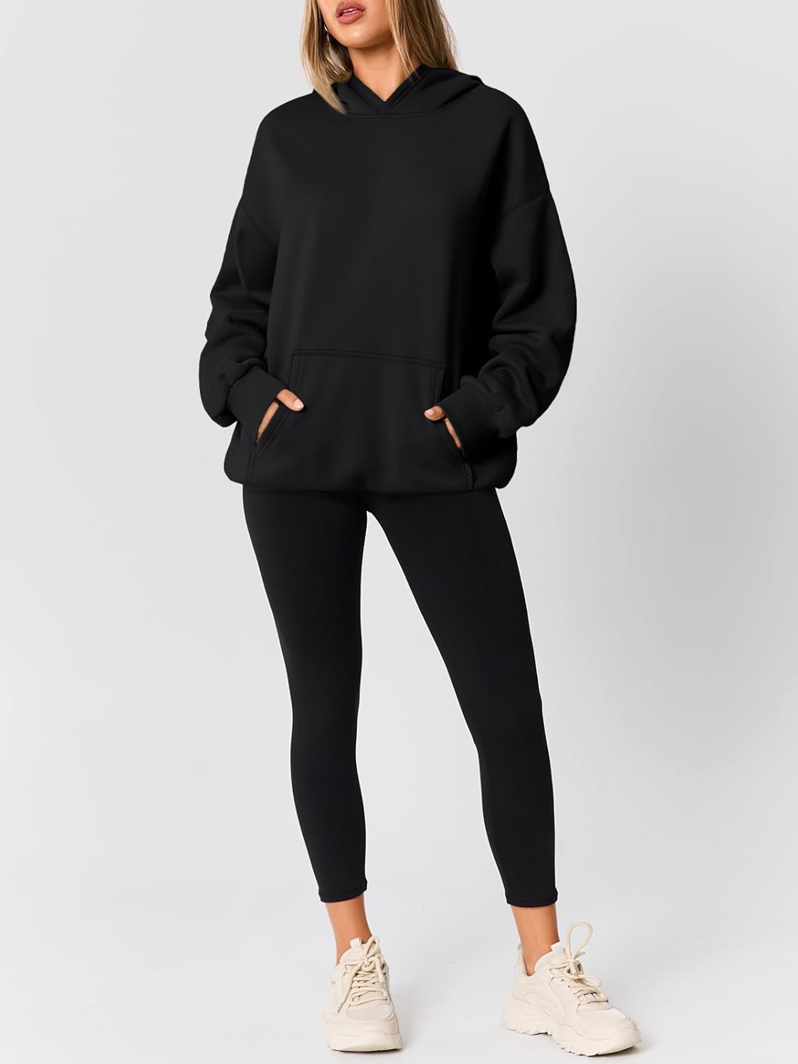 | Features | Pullover design, cozy hood, kangaroo pocket, warm fleece interior, easy to pair with jeans, joggers, or leggings. |