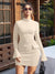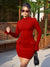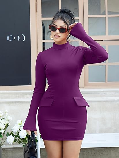 | Fit & Style | Bodycon mini dress with mock turtleneck, long flare sleeves, and a sleek, curve-flattering silhouette; sizes S–XL (approx. US 4–18). |