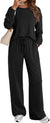 | Fit & Style | Two-piece lounge set with a relaxed long-sleeve top and wide-leg pants; elastic drawstring waist for a customizable, flattering fit in sizes S–XL (US 4–18). |